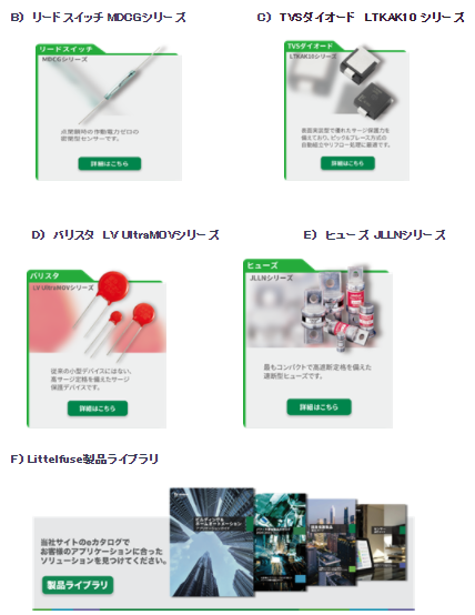 A) 概要リテルヒューズ(Littelfuse)社は1927年設立した、イリノイ州シカゴに拠点を置く多国籍な電気機器製造企業です。世界中に40箇所以上の販売、流通、製造及び技術拠点を持ちます。主に回路保護製品(ヒューズ、TVS)と各種電気スイッチ、自動車用センサー製品を長期に亘ってマーケットに提供してきております。