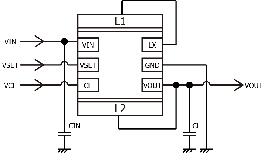 また、VSET端子に外部信号を入力することで、出力電圧の2値切替えが可能です。